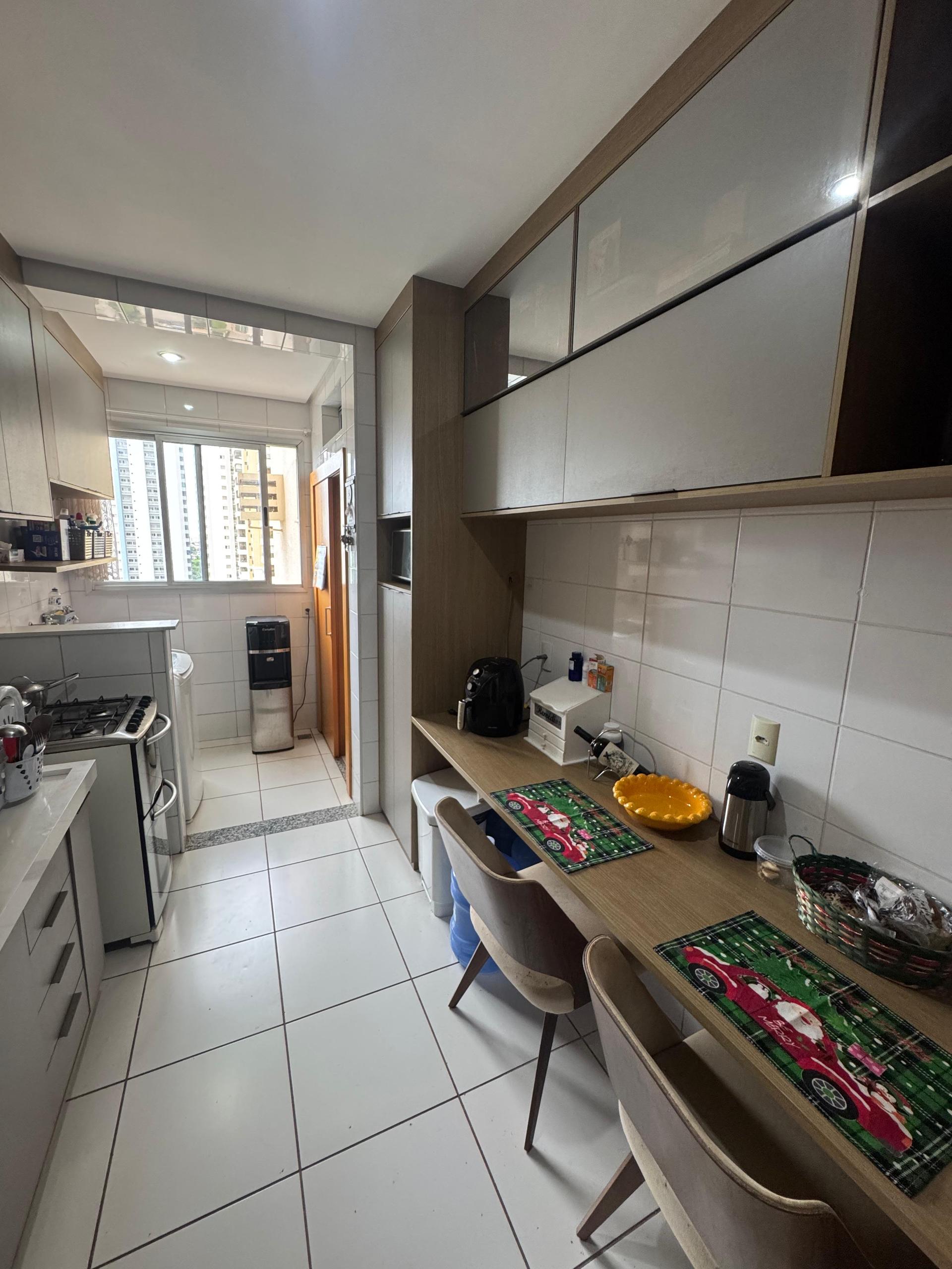 O imóvel conta com 3 quartos (1 suÃte), sala de TV, estar e jantar integradas, lavabo, banheiro social, cozinha completa de armários, área de serviço planejada e varanda gourmet com churrasqueira. Possui ainda 2 vagas de garagem, cortinas instaladas, projeto de iluminação completo, móveis planejados e ar-condicionados em todos os ambientes.
