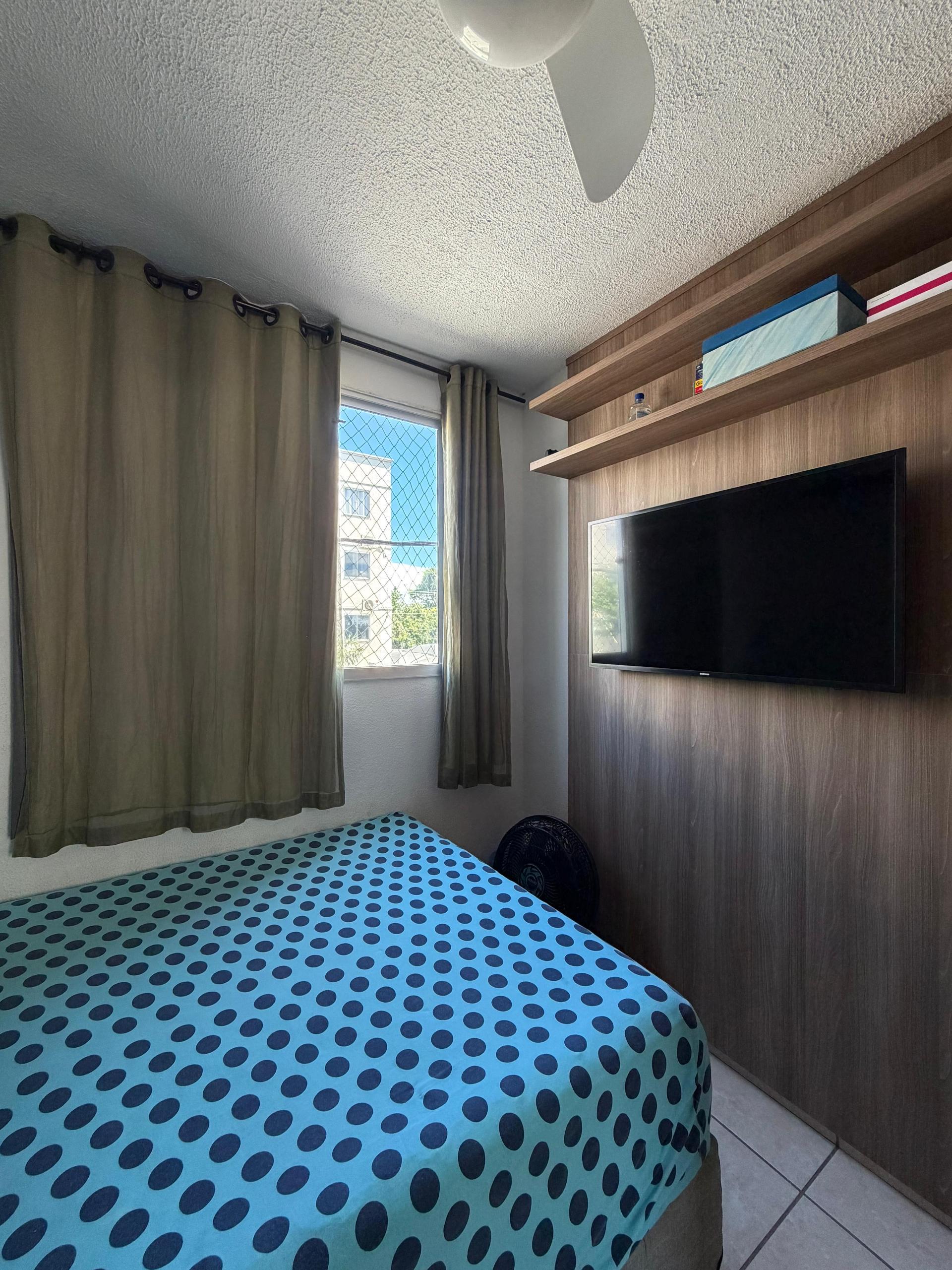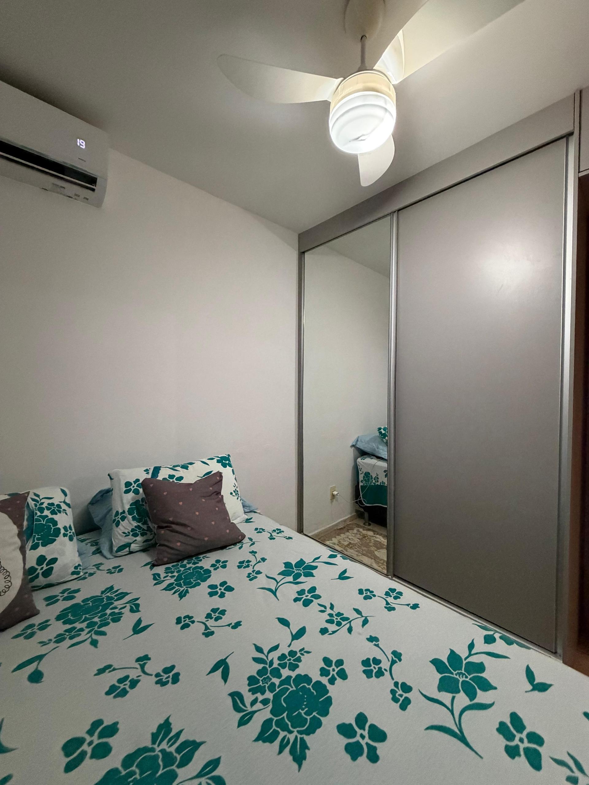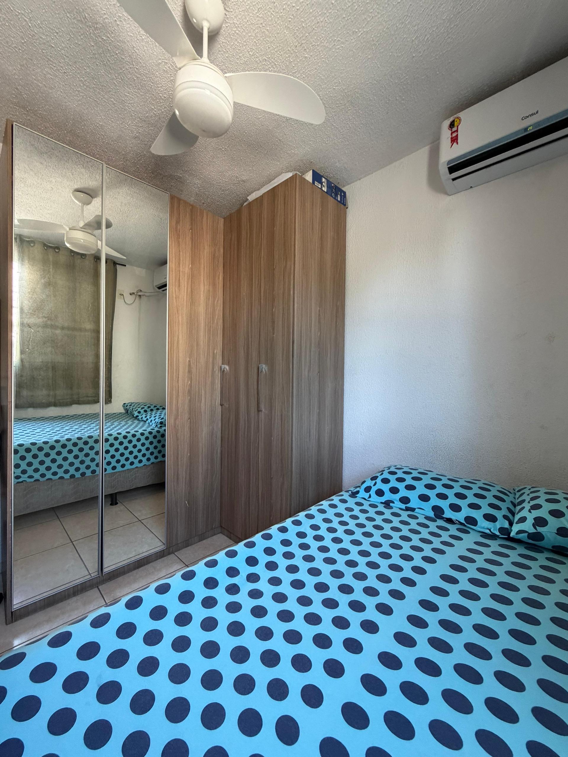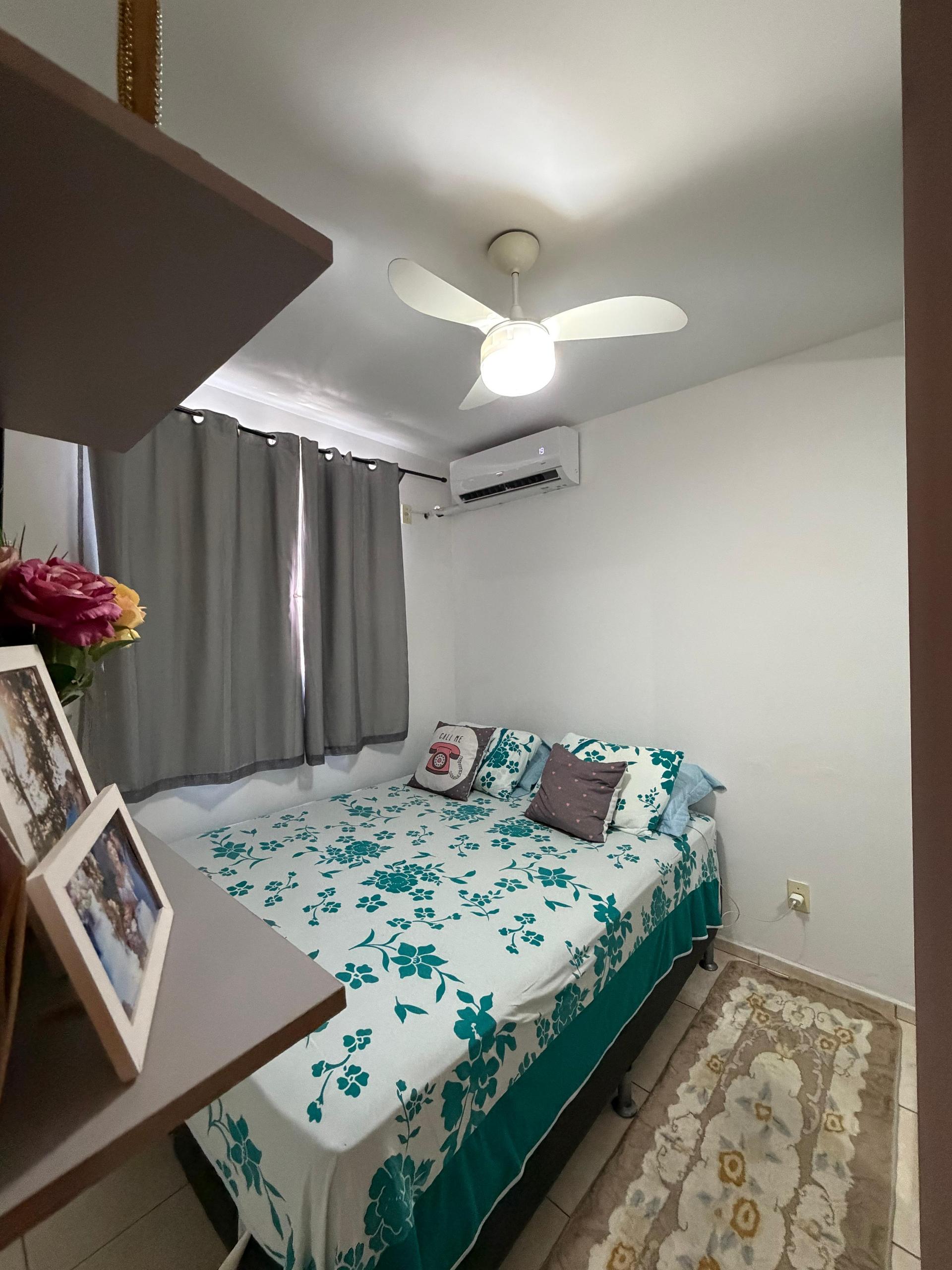 O imóvel conta com dois quartos, ambos com ar-condicionado instalado, proporcionando conforto térmico. Possui sala aconchegante, ambientes bem distribuÃdos e móveis planejados que agregam organização e funcionalidade ao dia a dia.