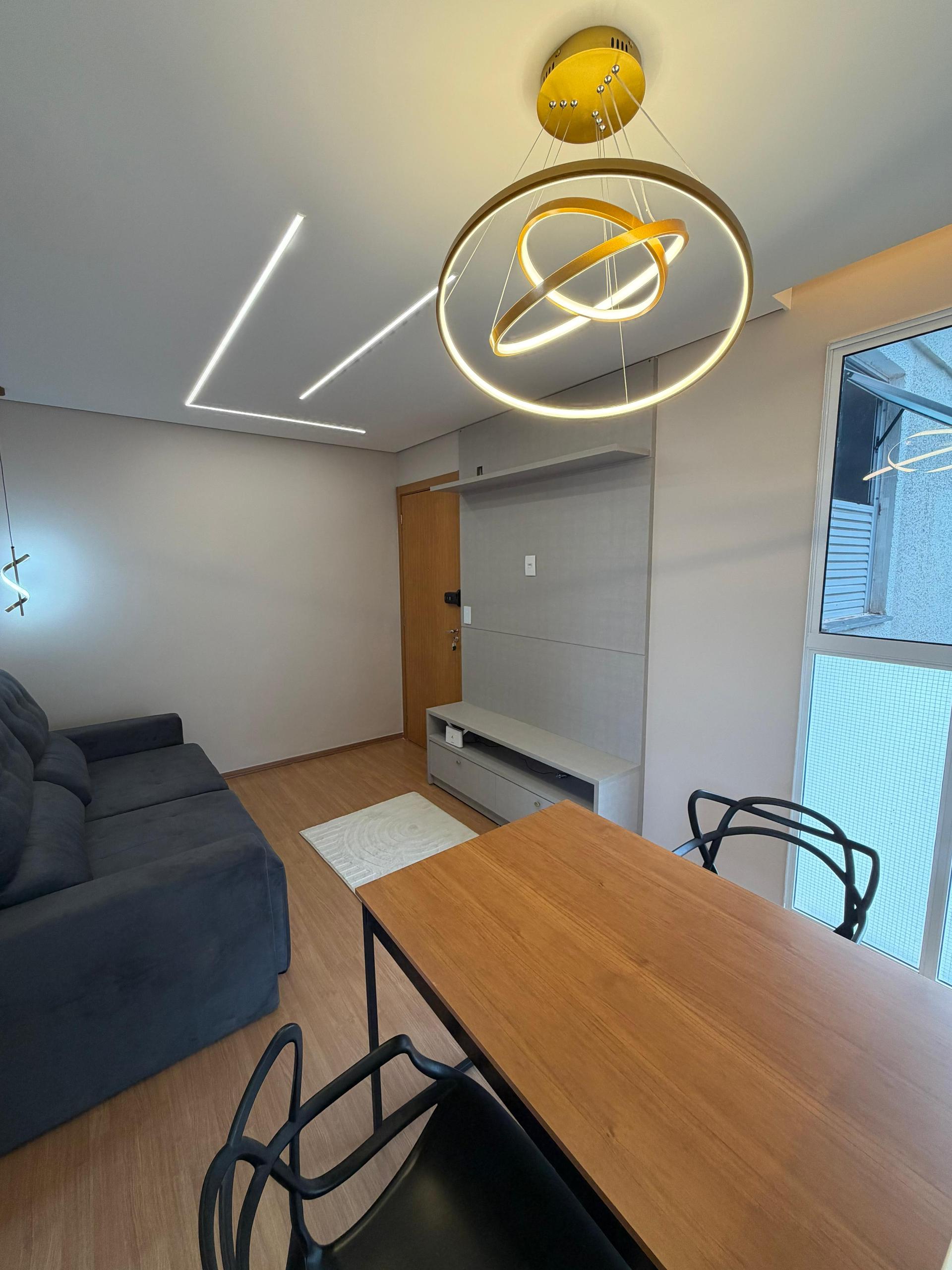 O projeto de interiores inclui gesso rebaixado e iluminação moderna, criando um ambiente sofisticado e aconchegante. Como diferencial, o apartamento possui automação integrada à Alexa, com iluminação e ar-condicionado conectados, oferecendo mais comodidade e inovação no dia a dia.