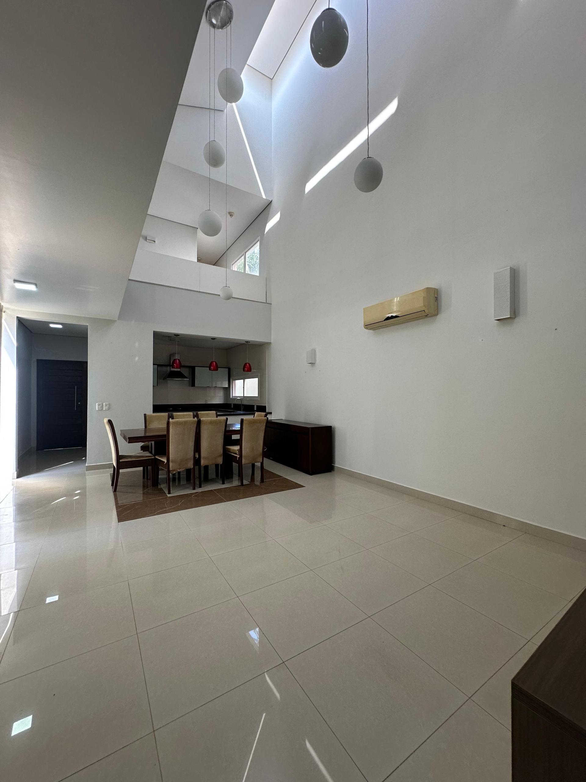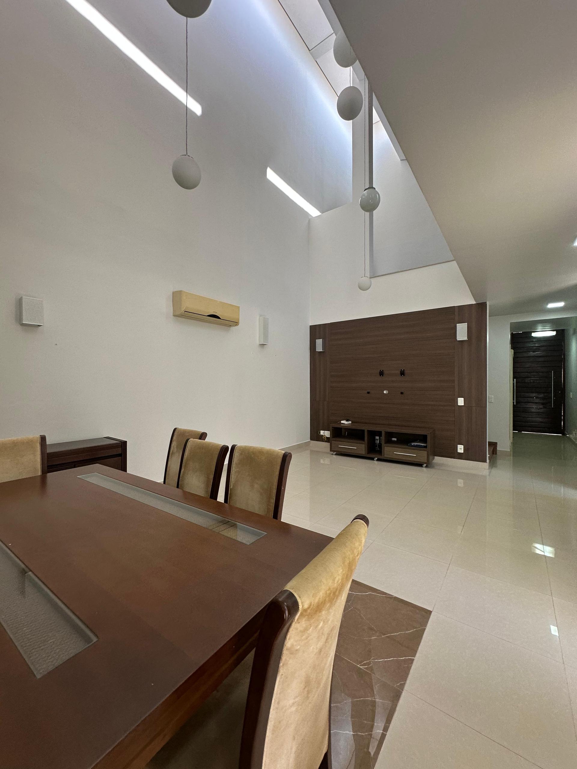 O imóvel possui 312 m² de área privativa, implantado em um terreno de 410 m², com projeto arquitetônico que valoriza amplitude, iluminação natural e conforto. A área social conta com sala de estar e jantar com pé-direito duplo, proporcionando imponência e sofisticação, além de lavabo e sala de cinema exclusiva.