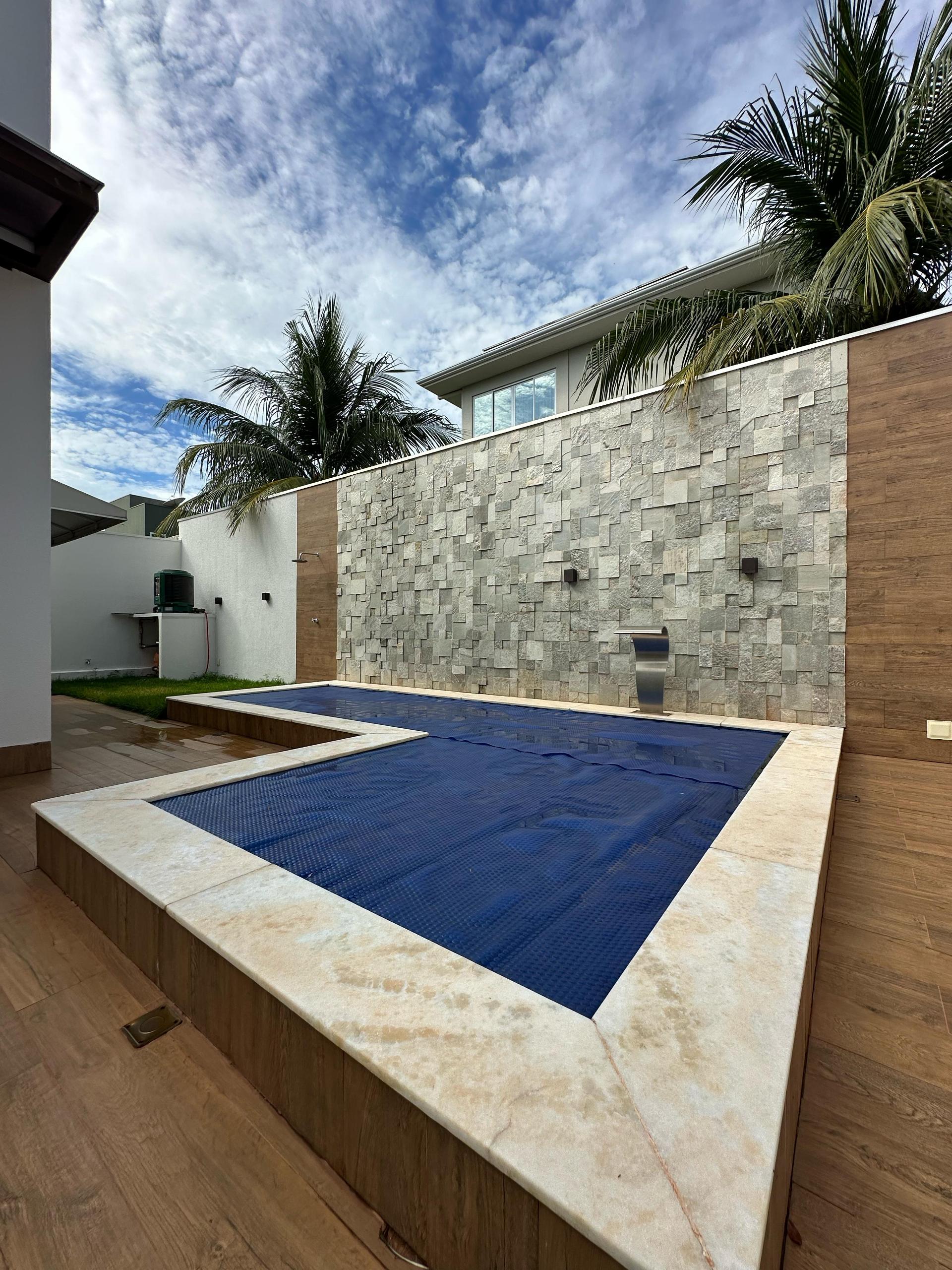 A área externa oferece uma belÃssima piscina com cascata, hidromassagem e aquecimento elétrico, além de banheiro de apoio. O imóvel possui ainda sistema de aquecimento por boiler em todas as torneiras e chuveiros, além de usina fotovoltaica com geração média de 1.000 kWh/mês, proporcionando economia e sustentabilidade.
